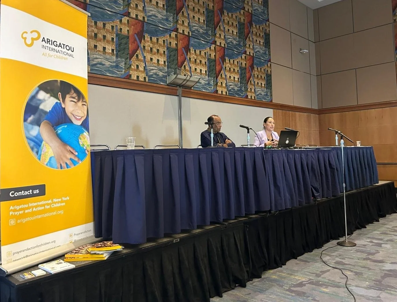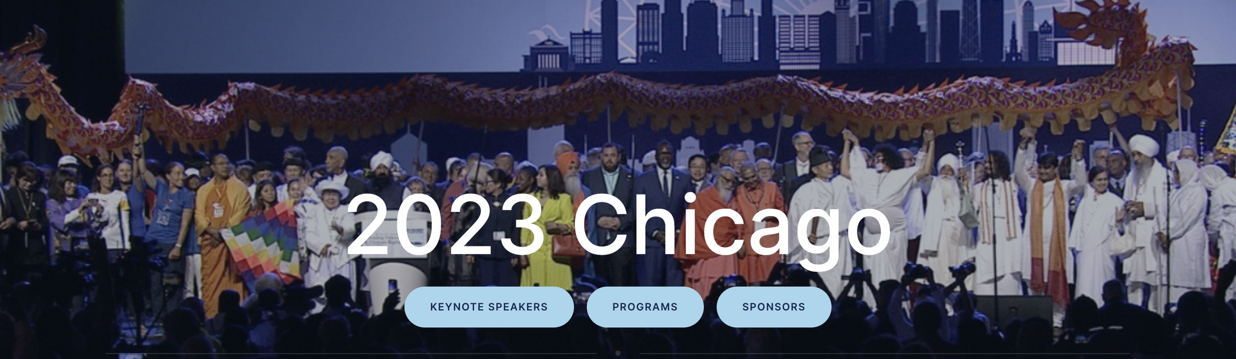 Featured Speakers Alibe Hamacher and Dr. Anantanand Rambachan address the 2023 Parliament of the World Religions on behalf of Arigatou International .