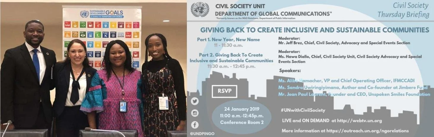 Alibe V. Hamacher and her IFMCCADI team, presenting at the 67th UN Civil Society Conference in New York City, United Nations Headquarters.